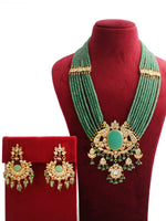 Gold Plated Long Necklace Set Studded with Simulated Kundan Stones and Beads.