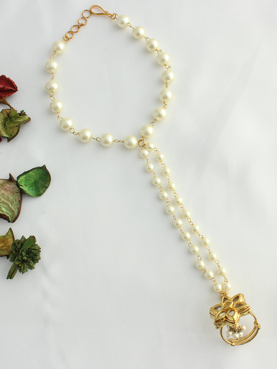 Introducing our gold tone hand harness are adorned with simulated kundans and faux pearls creating a stunning and stylish look. Crafted on a base of high-grade alloy metal,
