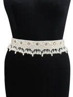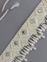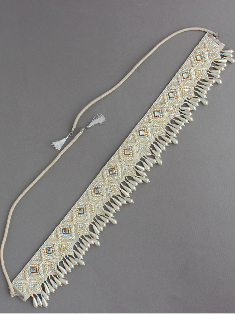 This handmade belly chain/belt is a unique and elegant accessory, meticulously crafted with faux pearls and intricate sequence (Sippi) work. The adjustable cord ensures a perfect fit, allowing you to wear it with comfort and style. The high-grade alloy metal adds durability to this exquisite piece. Elevate your look and showcase your individuality with this beautifully designed belly chain/belt.