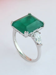 Silver-plated finger ring adorned with imitation stones in maroon, green, blue, and yellow hues. Base: Crafted from high-grade alloy metal.