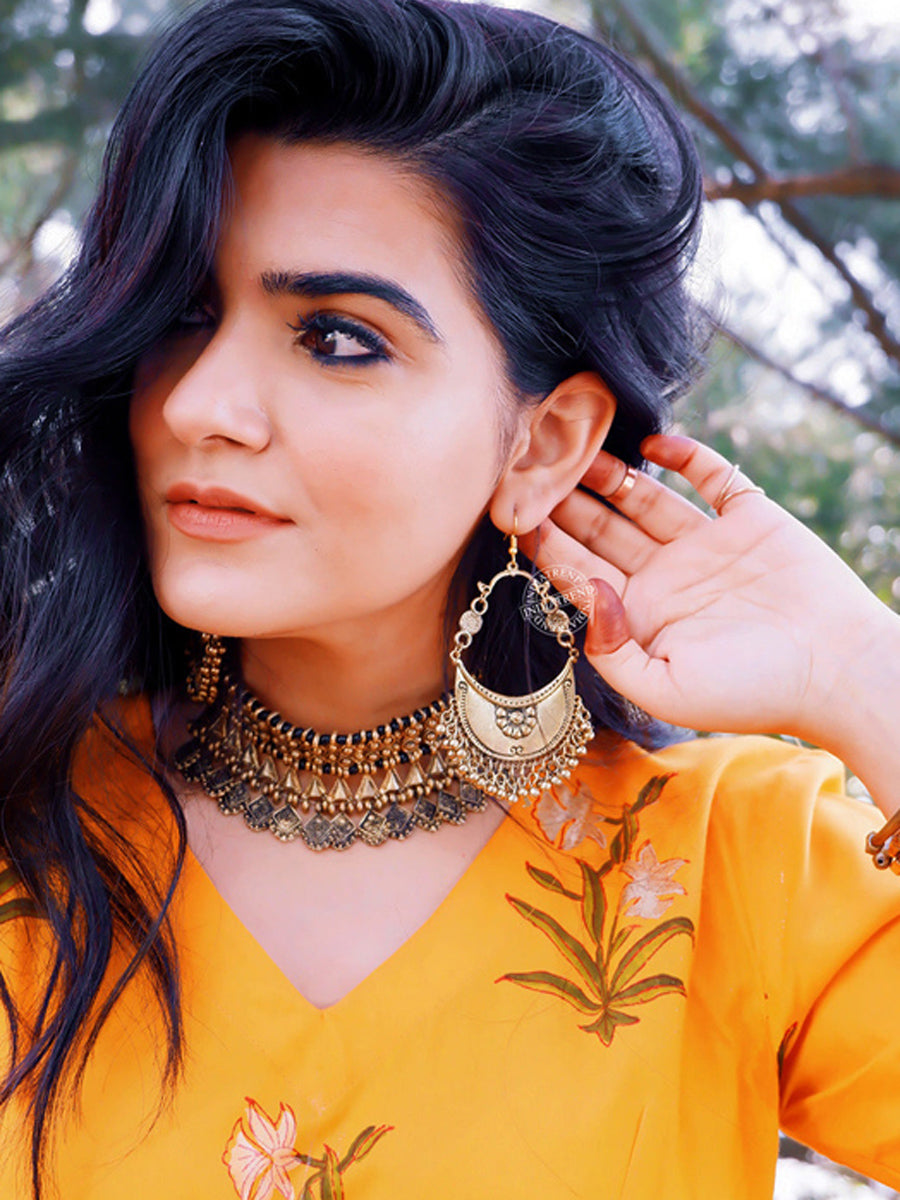 Embrace individuality with these Antique Gold Tone Banjara Earrings, a testament to traditional craftsmanship and timeless elegance.