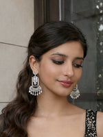 This pair of dangle earrings combines the warmth of rose gold with the classic appeal of silver tone, creating a versatile piece. The simulated diamond CZs and color stones add a touch of sparkle and sophistication. With a size of approximately 80mm x 40mm, these earrings are designed to make a statement. The post back findings ensure a secure fit for pierced ears, and the high-grade alloy metal provides durability and a polished finish.