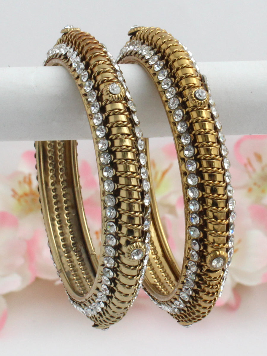 This 1 pair of antique gold-tone bangles featuring CZ stones, set in high-quality alloy metal. A timeless accessory for traditional and any occasions.