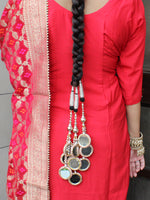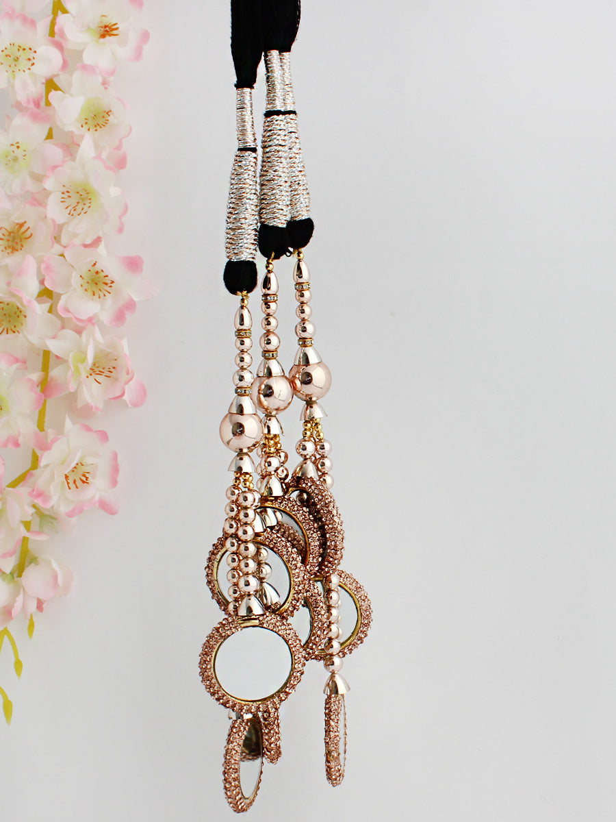 - Punjabi traditional paranda / parandi braid decoration choti hair accessory adorned with rose gold Czs, beads and mirrors