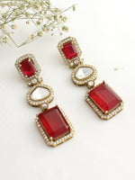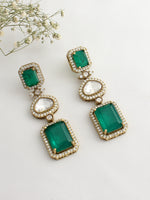 Introducing our Gold Tone Earrings adorned with simulated polki diamonds, sparkling CZ stones, and striking shattered stones. Crafted from high-grade alloy metal, these earrings add a touch of elegance to your ensemble and elevate your overall style with effortless grace.