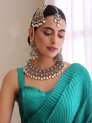 Gold / Silver Tone Necklace Set Studded with CZs Simulated Polki Multicolor Beads and Faux pearl.