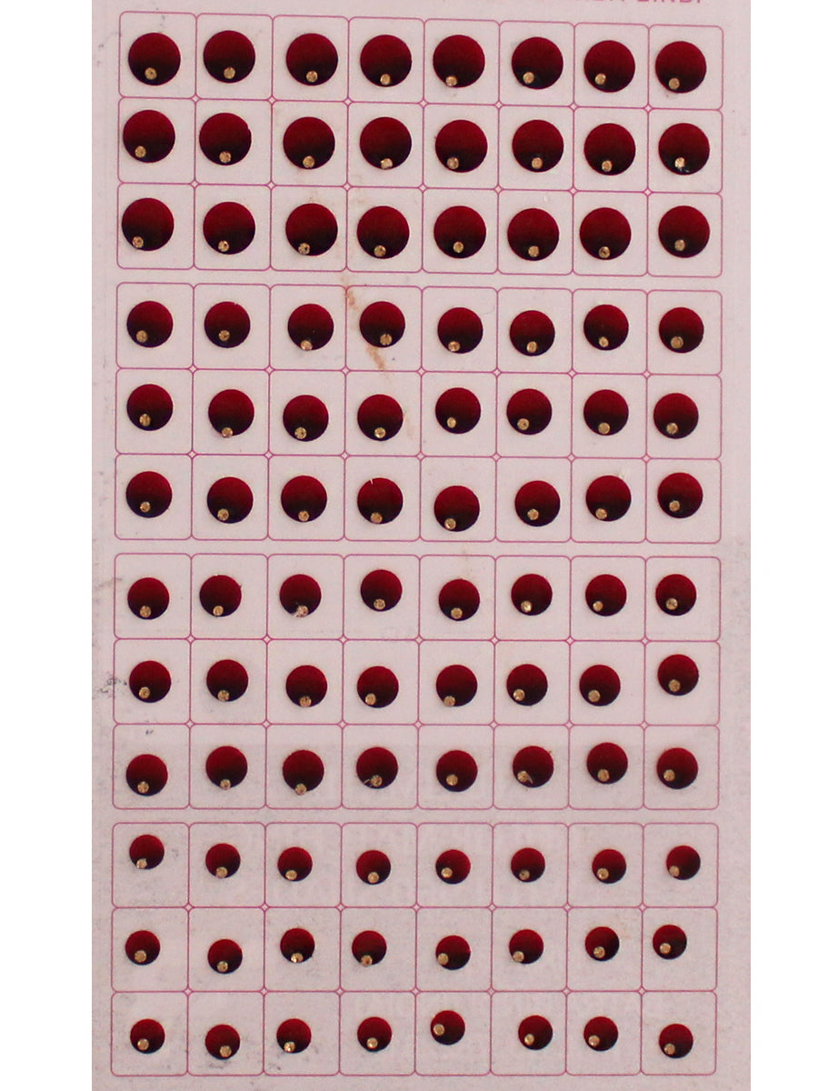This collection of bindis offers a variety of sizes and colors, making it versatile for different occasions and outfits. The use of golden stones adds a touch of elegance and can complement various traditional and festive looks. The velvet material suggests that these bindis are not only stylish but also comfortable to wear.