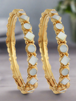 1 Pair gold plated screw opening bangle studded with natural mother of pearls.
