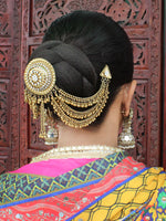 This hair bun pin is designed to add a touch of elegance to your hairstyle. The antique gold tone, combined with the sparkle of CZs and the richness of golden beads, creates a sophisticated and timeless look. The length of 350mm allows for versatility in styling, and the center width of 90mm adds a statement to your hair bun. The high-grade alloy metal ensures durability and a polished finish, making it a perfect accessory for various occasions.