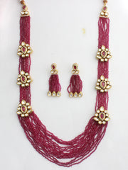 Gold Plated long Necklace Set Studded with CZs Simulated Polki Diamond Ruby Pink Stones and Crystal Beads